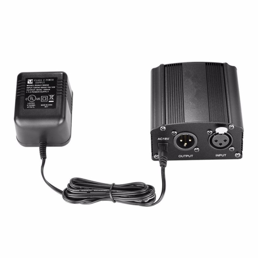 Phantom Power Supply 48V adalah power supply tambahan untuk microphone condenser yang menggunakan plug XLR sehingga suara yang dihasilkan lebih jernih dan lebih keras. Phantom Power ini dapat menghantar daya hingga 48V dan low-noise.