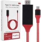 Kabel HDMI dengan ujung port HDMI dan USB Type C. Kabel ini dapat Anda gunakan untuk mengkonversi perangkat yang menggunakan koneksi HDMI ke port USB Type C ataupun sebaliknya.